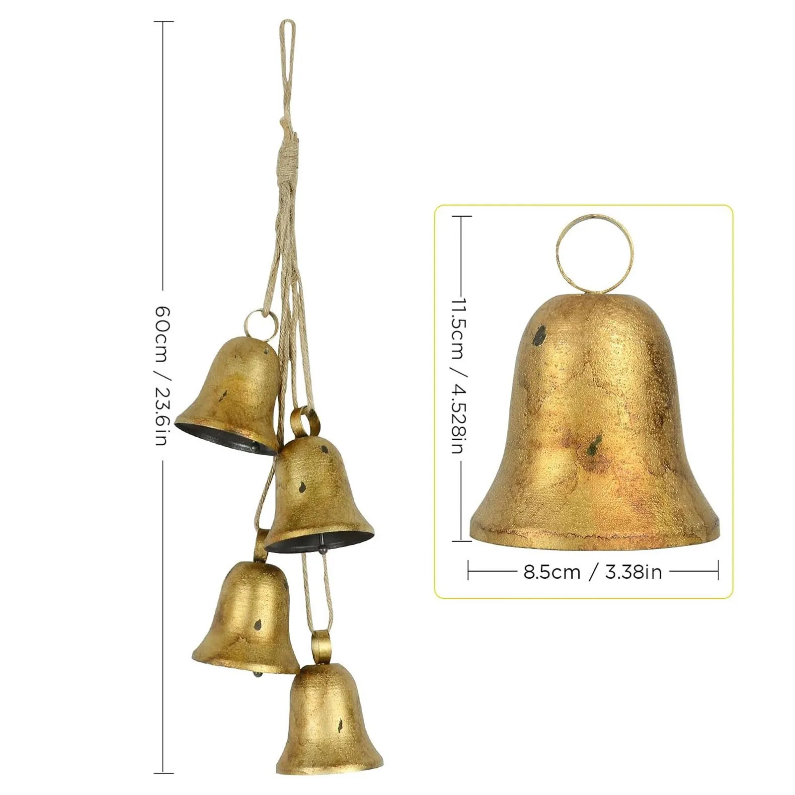 4-piece vintage gold metal bells—each with its own unique rustic charm, ready to bring joy to your home this holiday season and beyond!